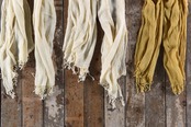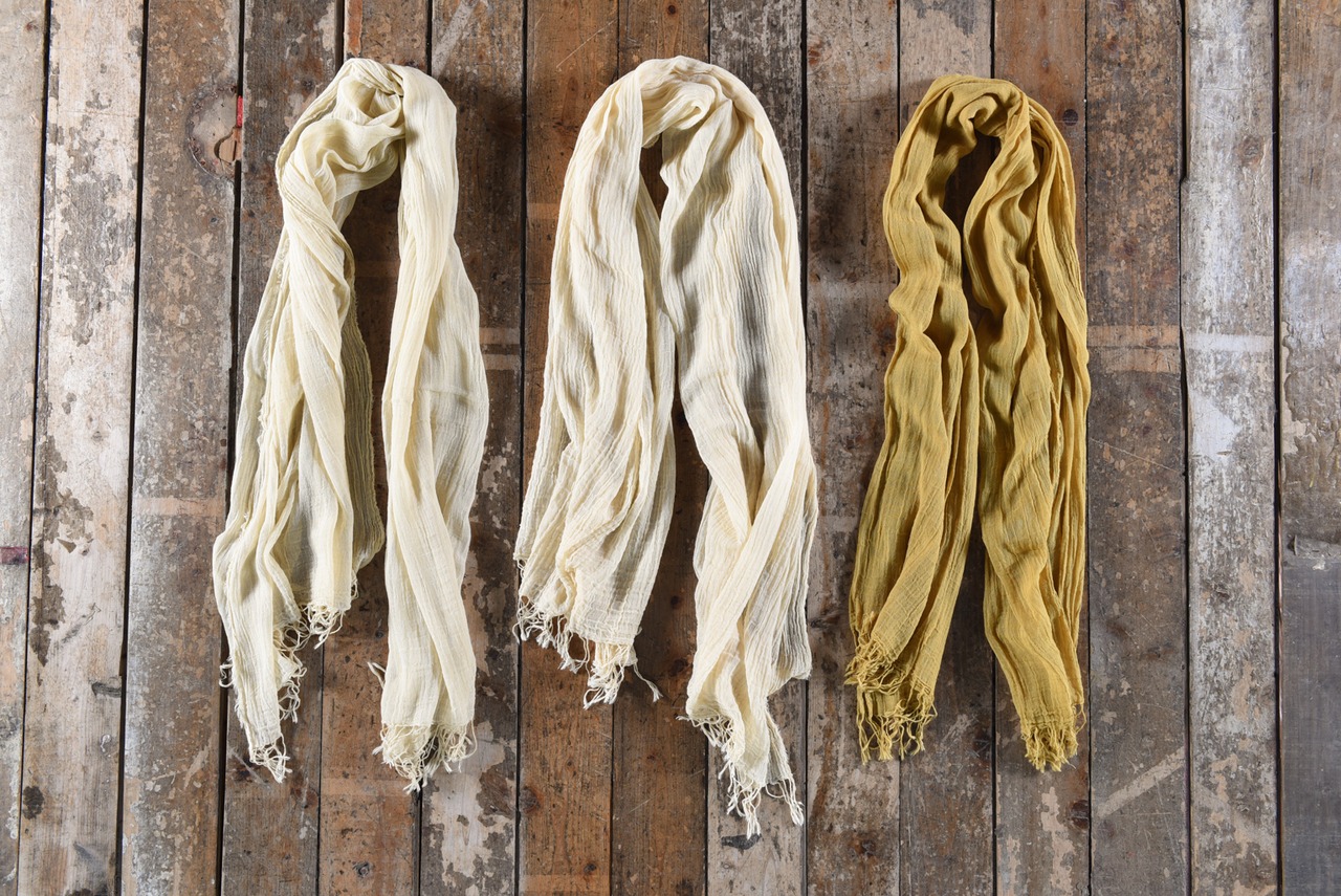 綿の栽培から生産に至るまで、農薬や化学薬品を一切使わず手間ひまかけて作られたガーゼストールを草木で染め重ねました。